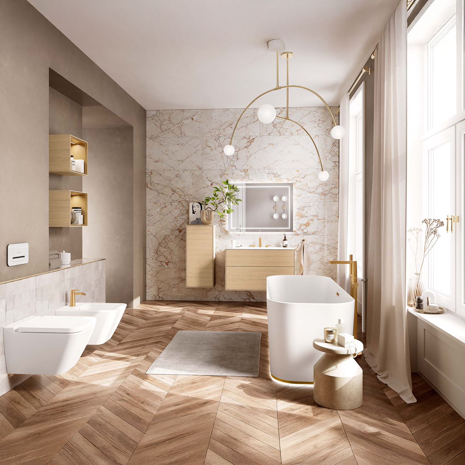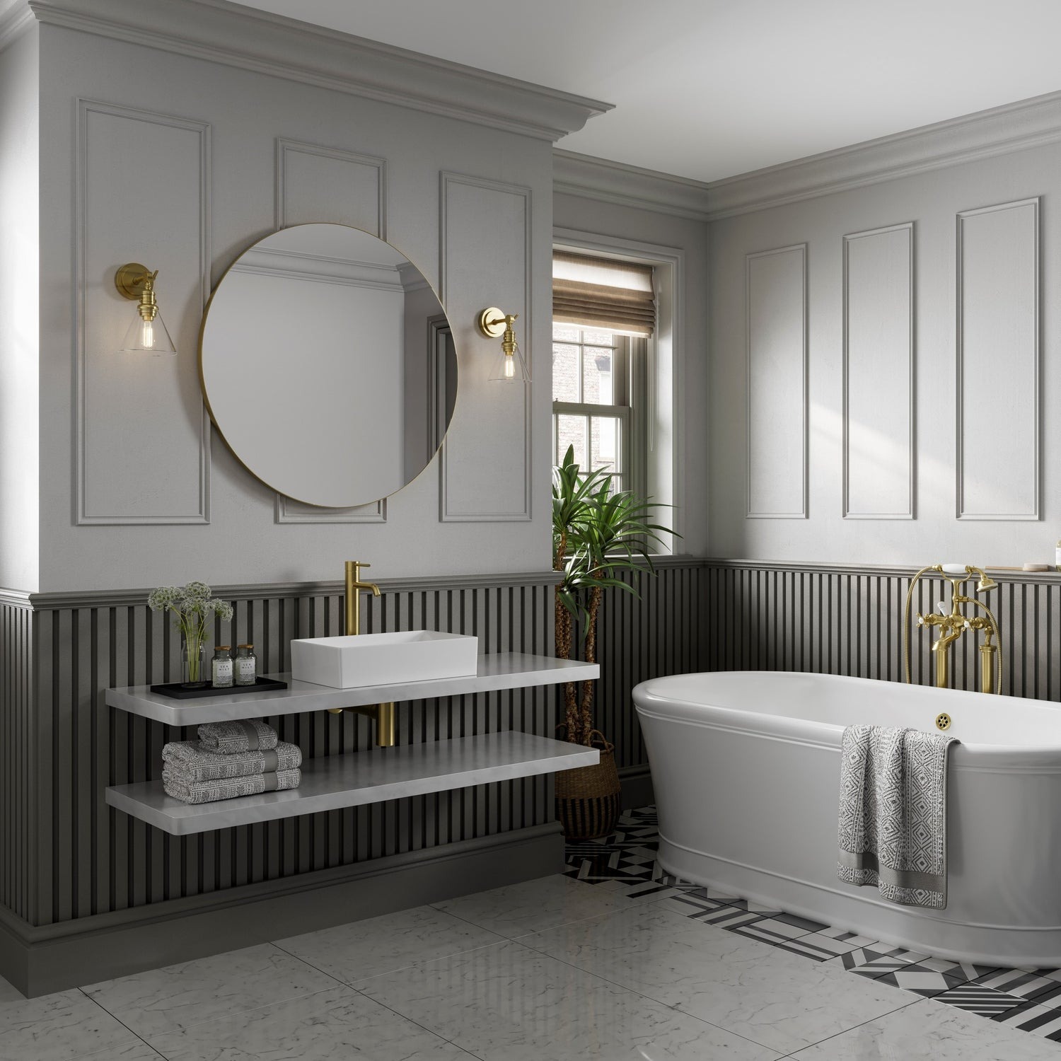Statement mirrors, lighting, radiators, and brassware